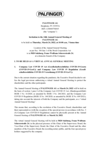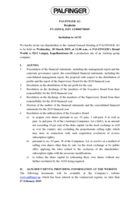 - the adoption of resolutions on capital measures and amendments to the Articles of Incorporation.