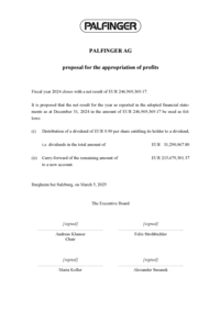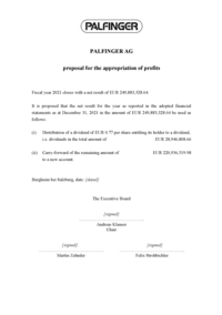 - the appropriation of the company profit