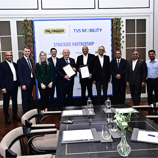 PALFINGER and TVS Mobility Group have signed a memorandum of understanding (MoU) to formalize and further develop their existing collaboration in India. With TVS Mobility Group – a leading provider of end-to-end mobility solutions in the country – PALFINGER aims to enhance operational efficiency and strengthen market responsiveness in one of its key growth markets as part of its Strategy 2030+. The MoU focuses on supply chain topics, rentals as well as service network development.