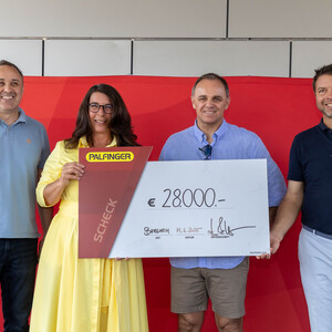 The day would not have been complete without Hubert Palfinger, Chairman of the Supervisory Board of PALFINGER AG, Hannes Palfinger, Second Deputy Chairman of the Supervisory Board of PALFINGER AG, and Felix Strohbichler, CFO of PALFINGER AG, presenting a check for EUR 28,000 to Claudia Kopp, who is Head of Salzburg Children’s Cancer Aid. This year, the municipality of Bergheim also contributed EUR 3,000 to the donation. It is an expression of a heartfelt partnership that goes far beyond contributing to financial support.